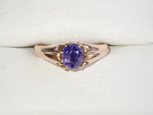 70 K768 An 18ct rose gold single stone ring set with a natural colour changing purple/blue sapphire C1900 Band C