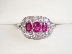72 An exceptional quality & scarce Burmese ruby 3 stone ring surrounded by diamonds finely mounted in platinum & marked 91 zolotnik pure 1908-1917 Band E