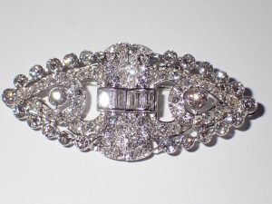 *9603 NXXX A fine platinum baguette & round diamond Art Deco diamond double brooch C1925 Band E