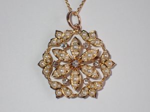 *50 A mint condition 15ct gold pearl & diamond pendant/brooch C1900 Band C