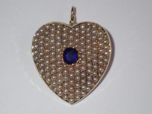 *58 A 14ct gold Sapphire & pearl heart pendant/brooch C1909 Band C