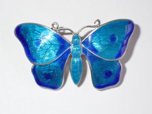 *107 A fine condition small silver & gold guilloche enamel butterfly brooch by Child & Child C1900 Band C