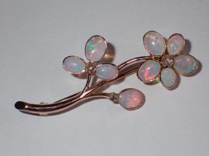 K810 A pretty 15ct rose gold opal & diamond flower brooch C1900 Band C sold