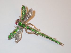 K859 An exceptional 18ct gold Russian demantoid garnet & diamond dragonfly brooch with ruby eyes in original case by Ollivant & Botsford of Manchester C1900 Band E