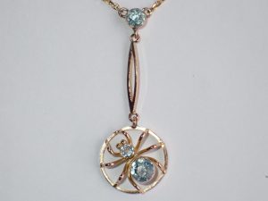 20 A 9ct gold aquamarine spider necklace on 18 inch chain C1910 £565