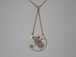 34 A pretty 15ct gold & platinum pearl set “grape” necklace C1910 Band C