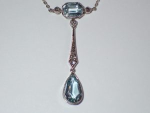 *59 A platinum Belle Epoque aquamarine & diamond drop necklace C1910 Band C