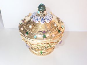 871 A highly unusual & fine quality silver gilt multi enamelled gem set covered box C1900? Band C on reserve