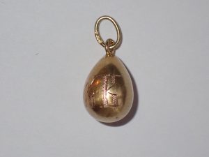 27 K783 A small Russian 56 zolotnik gold egg pendant engraved XB C1910 £465