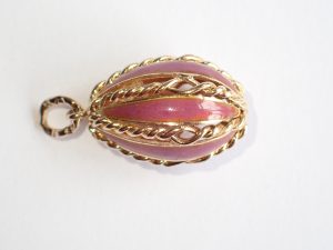 75 A 56 zolotnik twisted gold & pink enamel egg pendant C1910 £875 sold