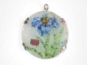 *G175 A fine Pate de verre glass pendant signed by Almalric Walter & Henri Berge & mounted with 4 leaf clovers in silver C1925 £965