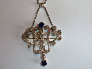 H815 18ct gold and platinum sapphire and diamond pendant/ brooch c1905 Band D