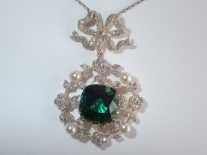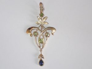J124 A 56 zolotnic demantoid garnet, sapphire and pearl pendant Moscow 1908-17 Band C