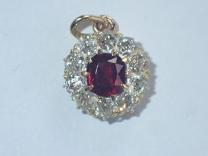K492 A small 18ct gold ruby & diamond cluster pendant C1900 £985