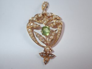 K174 A 15ct gold peridot & p[earl pendant/brooch c1905 £985