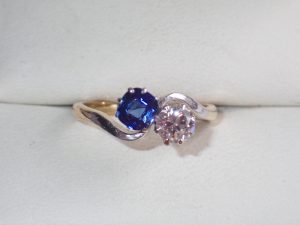 K564 A fine 18ct gold & platinum natural sapphire & diamond cross over ring C1925 Band C