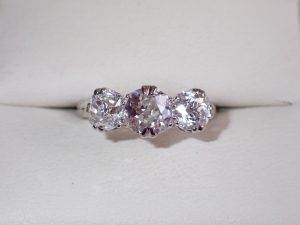 K311 A fine platinum diamond 3 stone ring C1915 Band E