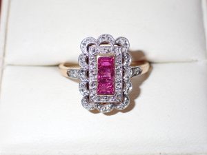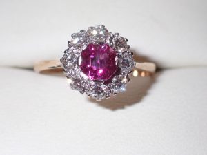 K347 A fine 18ct gold & platinum pink sapphire & diamond cluster ring C1925 Band D