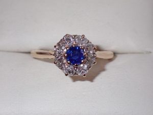 K510 A fine 18ct gold natural sapphire & diamond cluster ring C1900 Band C