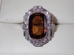 K517 A scarce platinum Art Deco Andalusite & diamond ring C1925 Band D
