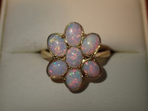J346 18ct gold large opal cluster ring c1900 Band C sold