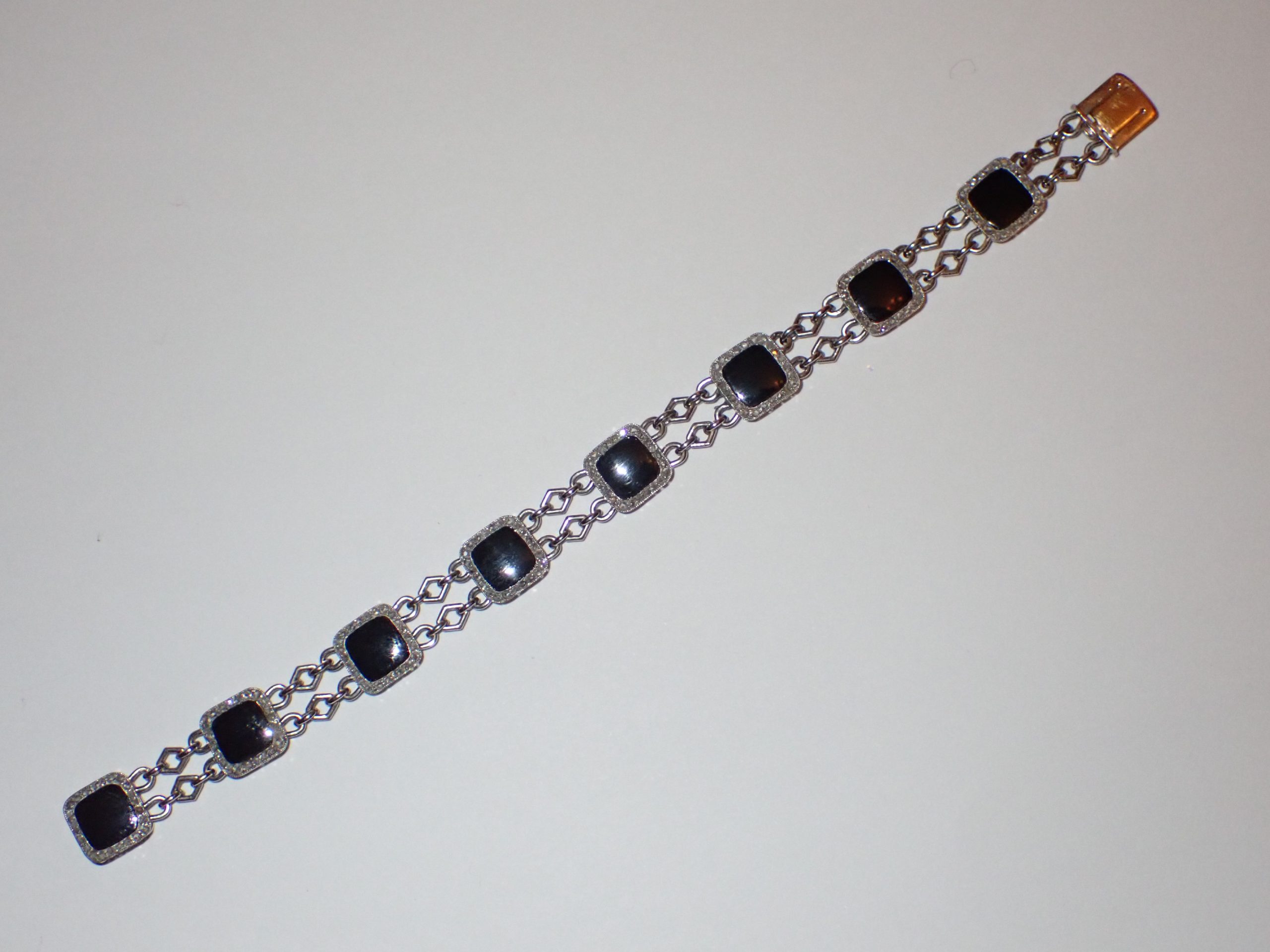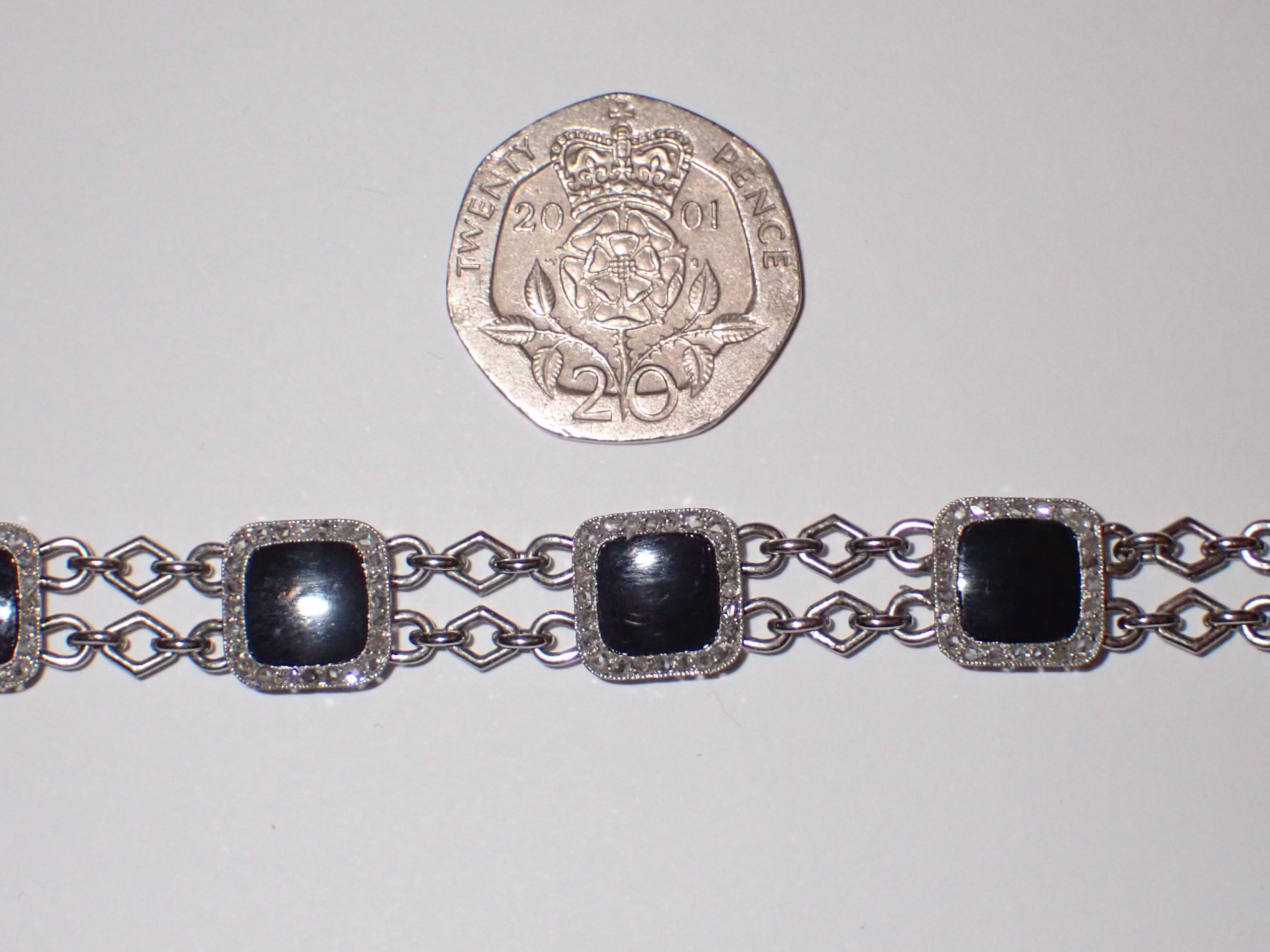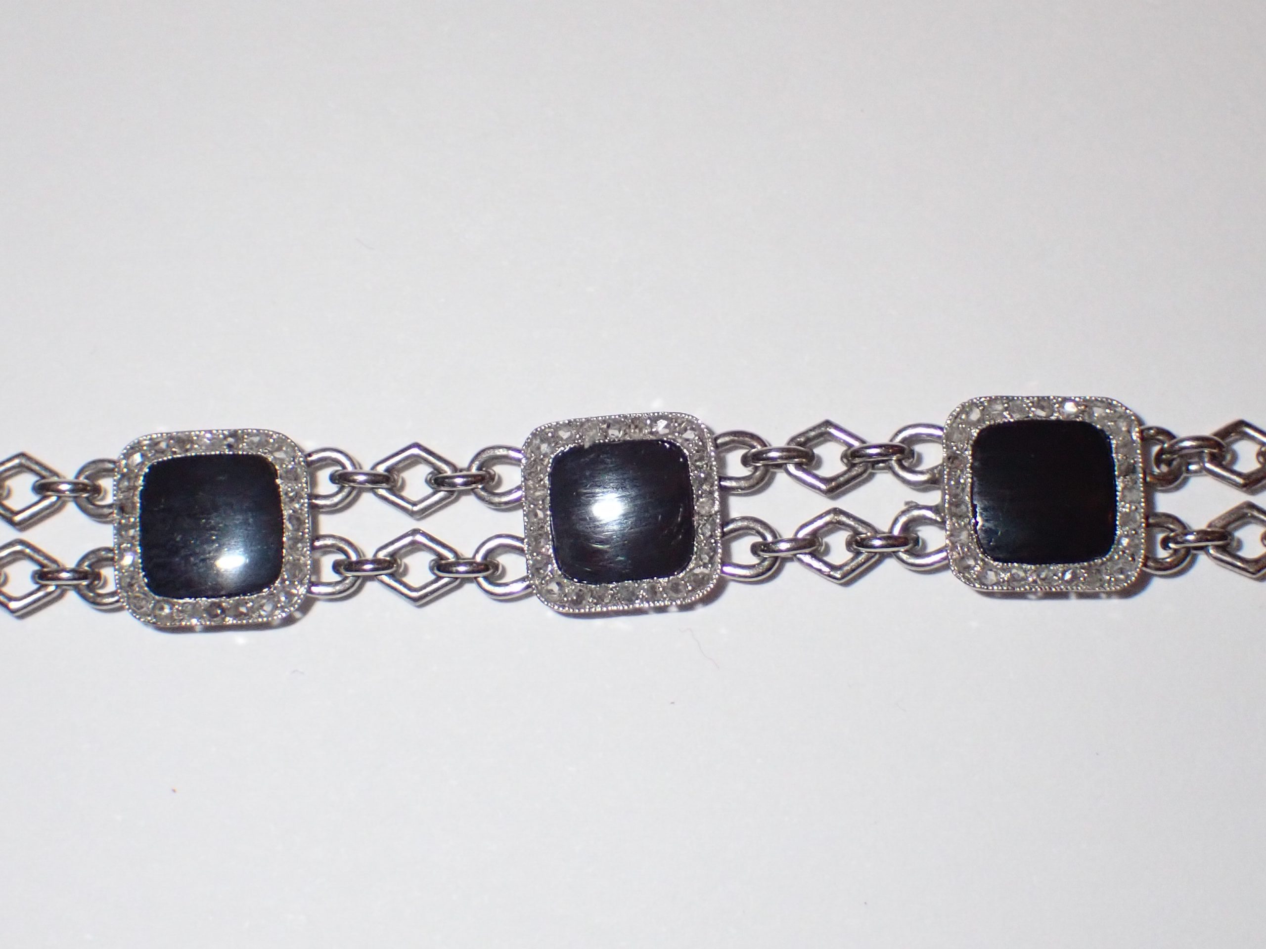 A high quality & scarce platinum black onyx & diamond 8 cluster bracelet, Possibly Russian inventory no 421376