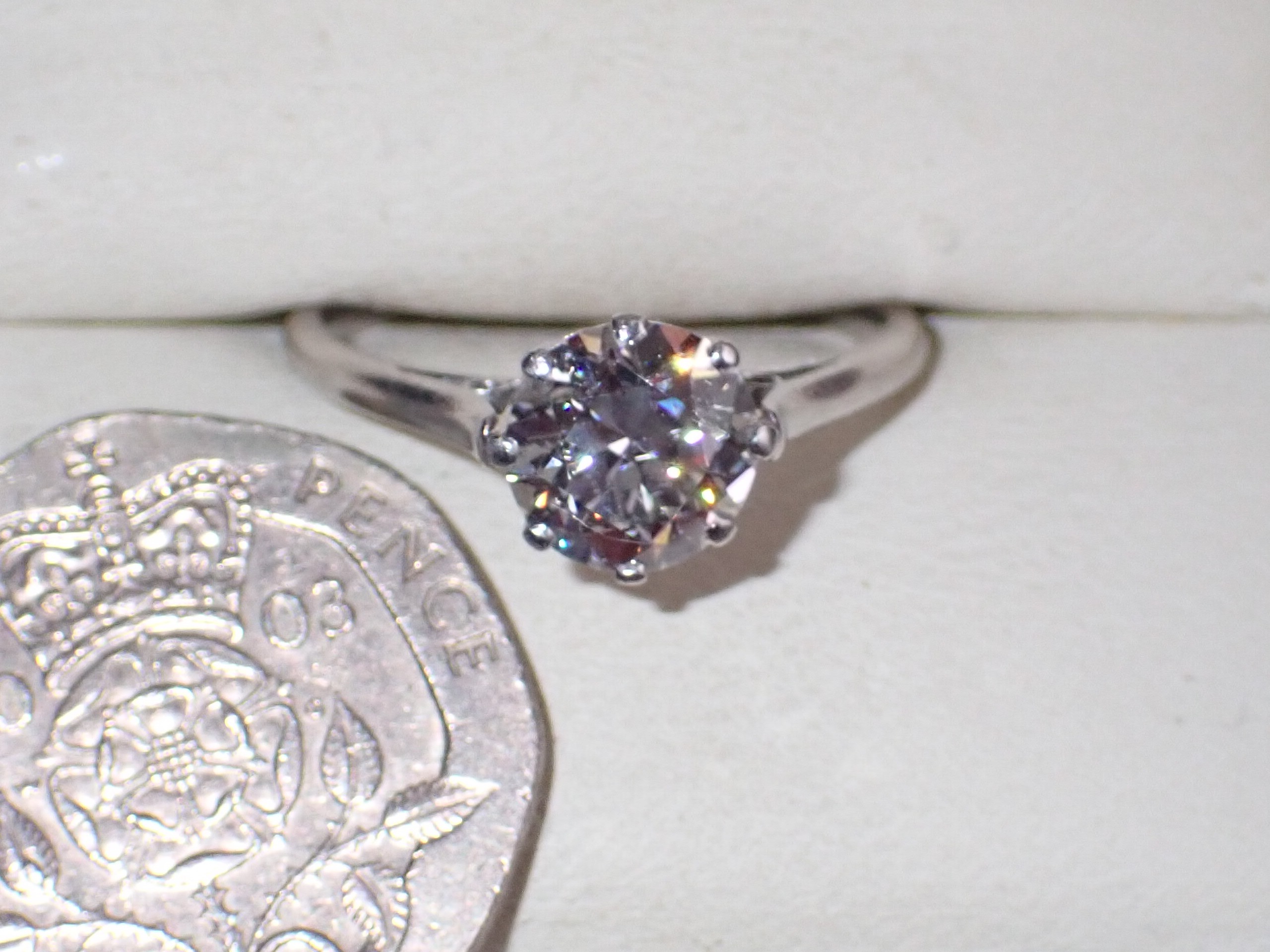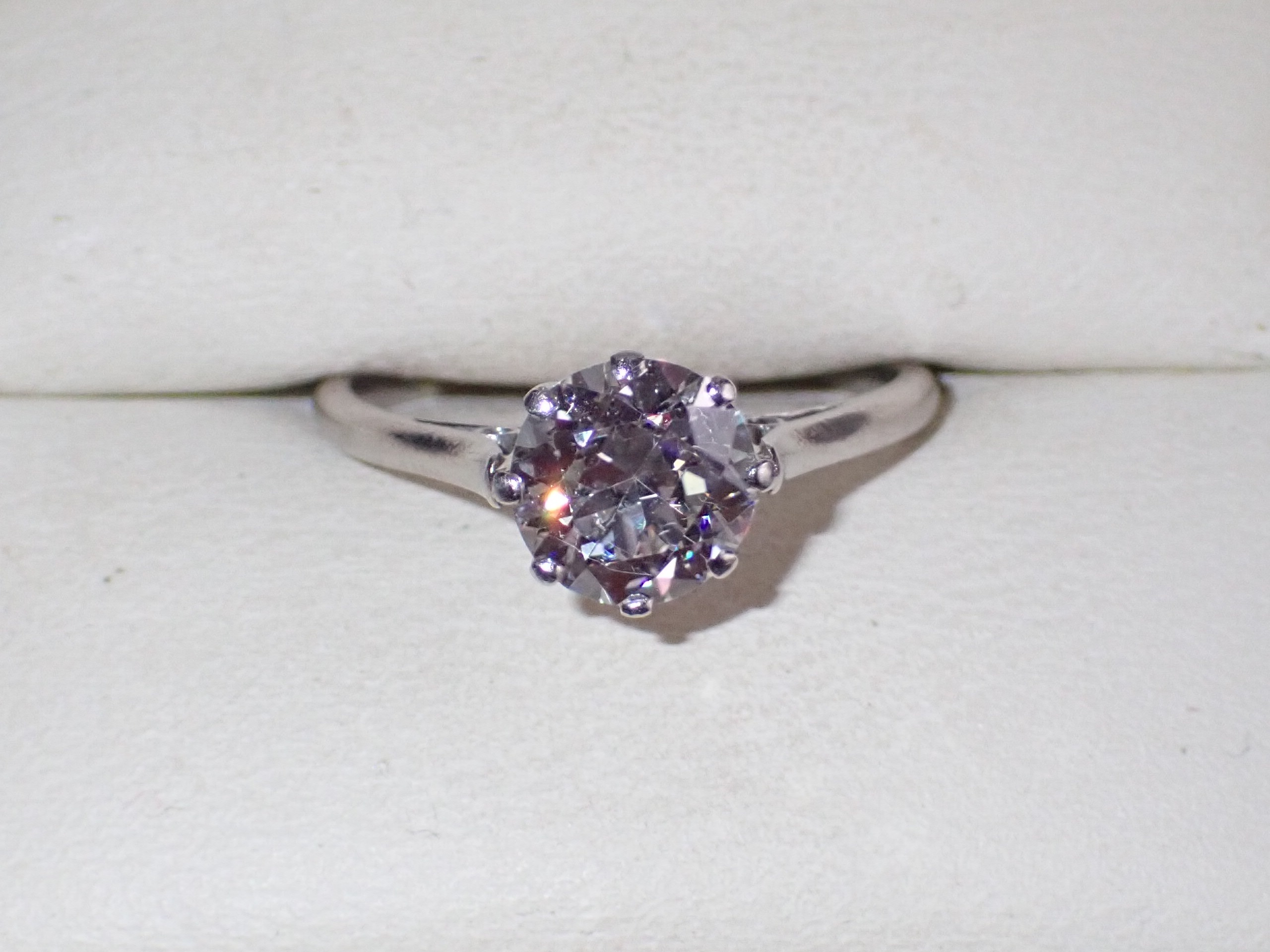 A fine diamond single stone ring mounted in platinum. Diamond approx 1.50cts Min "G " colour VS1 clarity in original setting