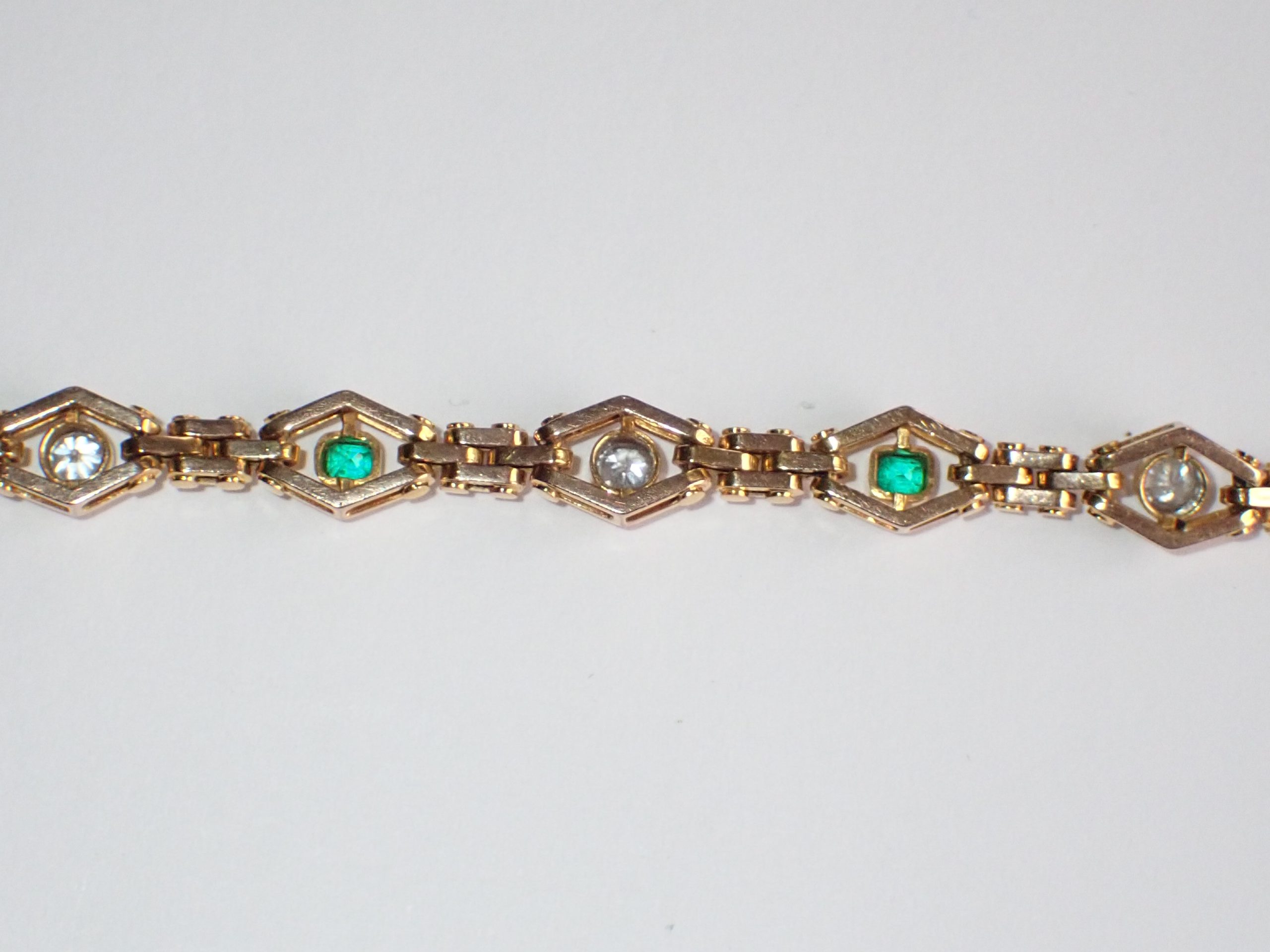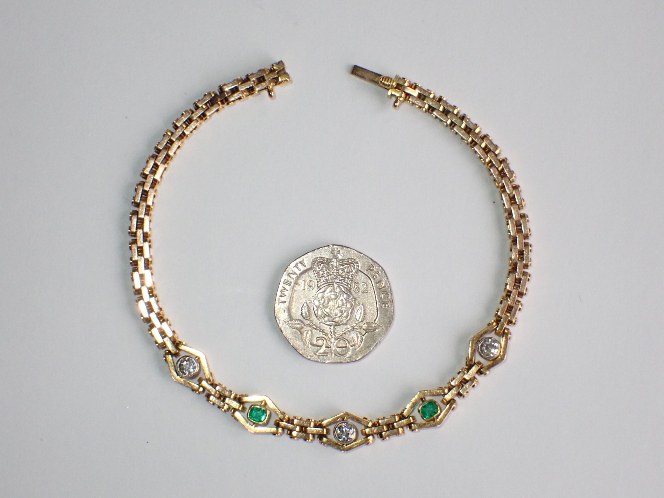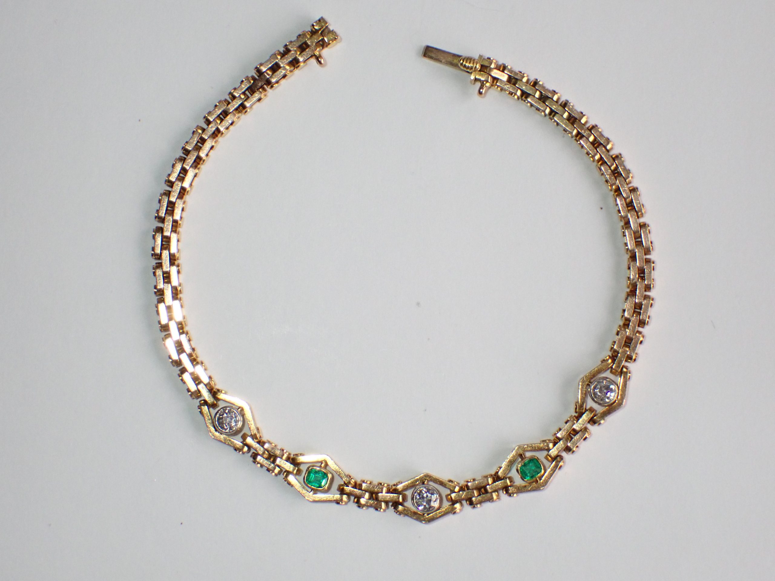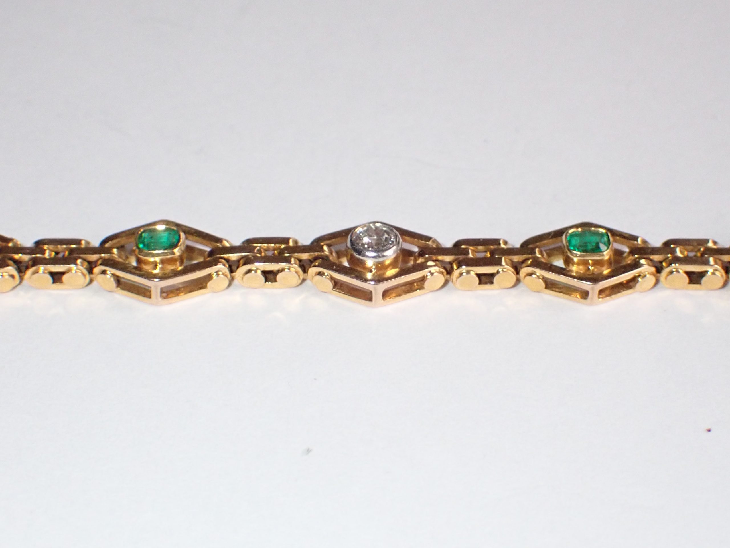 A fine 15ct gold & platinum emerald & diamond bracelet